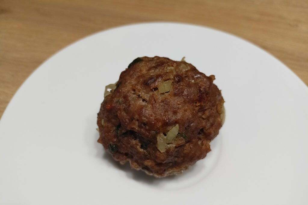 2. Uformować pulpety, ułożyć je w naczyniu żaroodpornym. Przykryć pokrywką lub folią aluminiową (można zrobić w niej kilka dziurek). Dla maksymalnej soczystości – piec około 50-55 minut w 140 stopniach (góra-dół) – szybsza opcja to 25-30 minut w 180 stopniach.