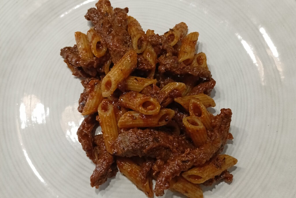 Jeśli masz ochotę na pikantny sos pomidorowy z wołowiną i niecodziennymi przyprawami – to przepis dla ciebie. Jedyny minus? Czas duszenia mięsa. Czy warto? Moim zdaniem – tak. Całość jest niezwykle aromatyczna, kremowa i dobrze otula makaron.