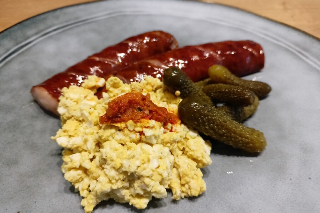 Ja używam wtedy niezastąpionych jajek – w połączeniu z musztardą i oliwą tworzą pastę, która jest świetnym dodatkiem do kiełbasy. Można stosować ją zamiast lub jako coś dodatkowego do całego grillowego zestawu.