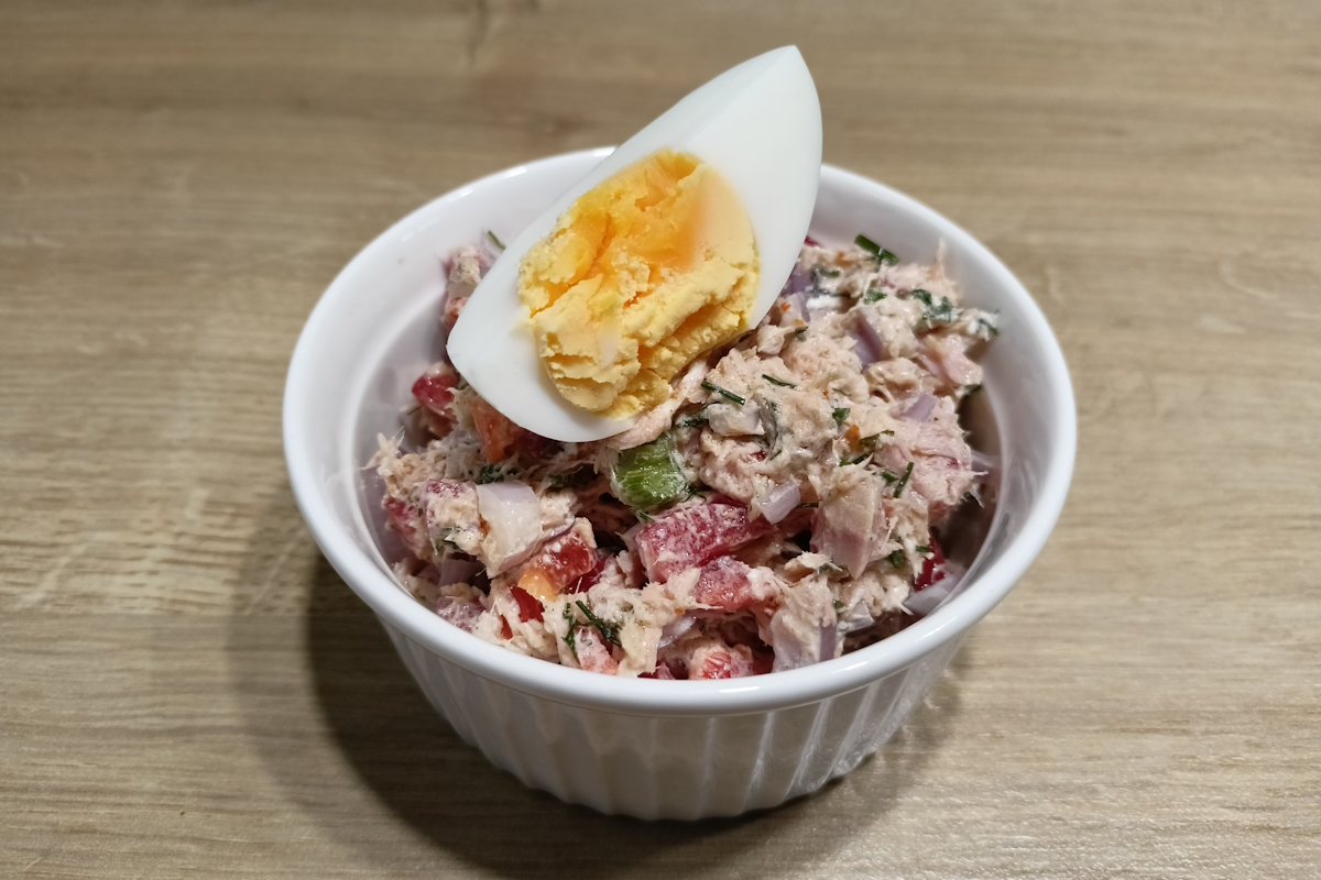 Uwaga: Opcja z tuńczykiem w sosie własnym będzie lżejsza o około 130 kcal i 12 g tłuszczu.