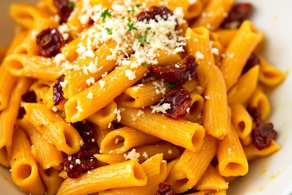 Penne z dynią i suszonymi pomidorami to kremowe, aromatyczne danie, które łączy naturalną słodycz pieczonej dyni z wyrazistym smakiem suszonych pomidorów. Dzięki dodatkowi śmietany i sera makaron staje się aksamitny i pełen głębi smaku – idealny nie tylko na jesienny obiad!