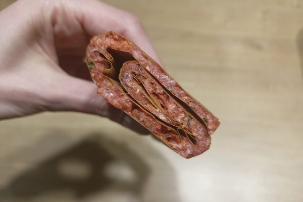 Kiedy mięso odrobinę przestygnie, rozwiń papier i wyjmij yaprak. Grubsze pozostaną w kształcie „roladki”, cieńsze – rozpadną się bardziej jak pokrojony kebab.